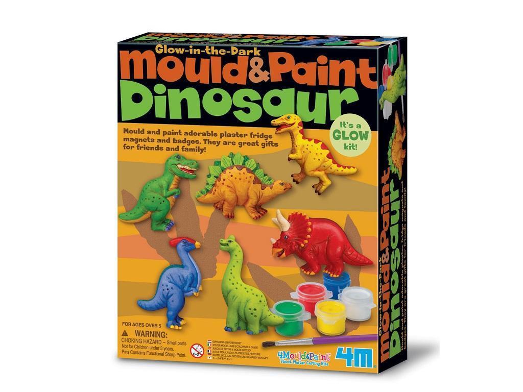 4M Magnetki v obliki dinozavrov – Izdelaj barvite magnete in priponke v oblikah dinozavrov. Uporabi kalup, mavec, barve in čopiče. Z uporabo posebne barve, se dinozavri svetijo ponoči! Za izdelavo potrebujete le domišljijo, ostalo je priloženo v kompletu. S kompletom lahko izdelate lahko 12 magnetov in priponk.