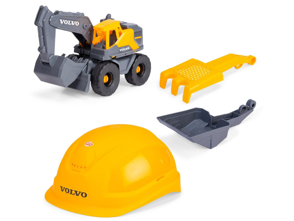 Dickie igralni set bager in čelada – Postanite mali gradbeni mojster z Volvo Tough Excavator kompletom! Ta 4-delni set je idealen za otroke od 3. leta naprej, ki obožujejo kopanje, gradnjo in igro na gradbišču.