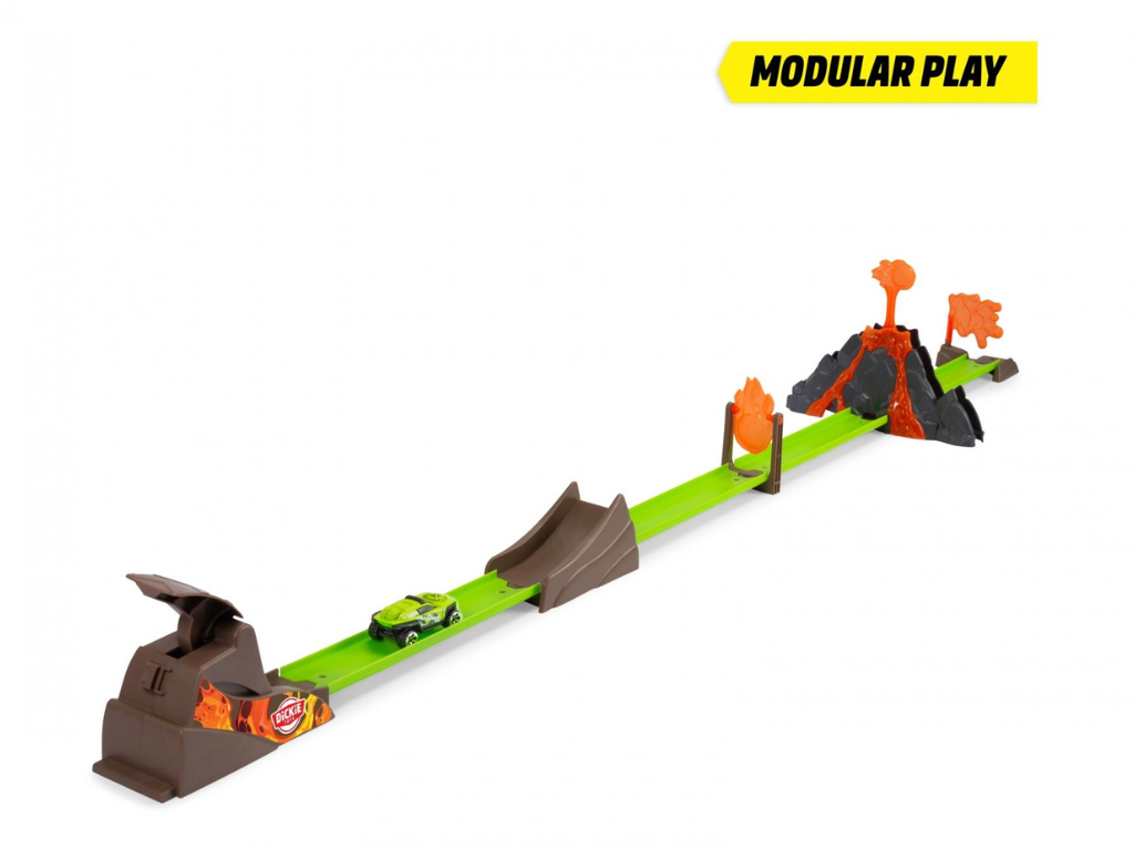Funkcije: katapult za zagon avtomobilčka, modul za različne postavitve steze, ovire, rampe in efekt izbruha vulkana