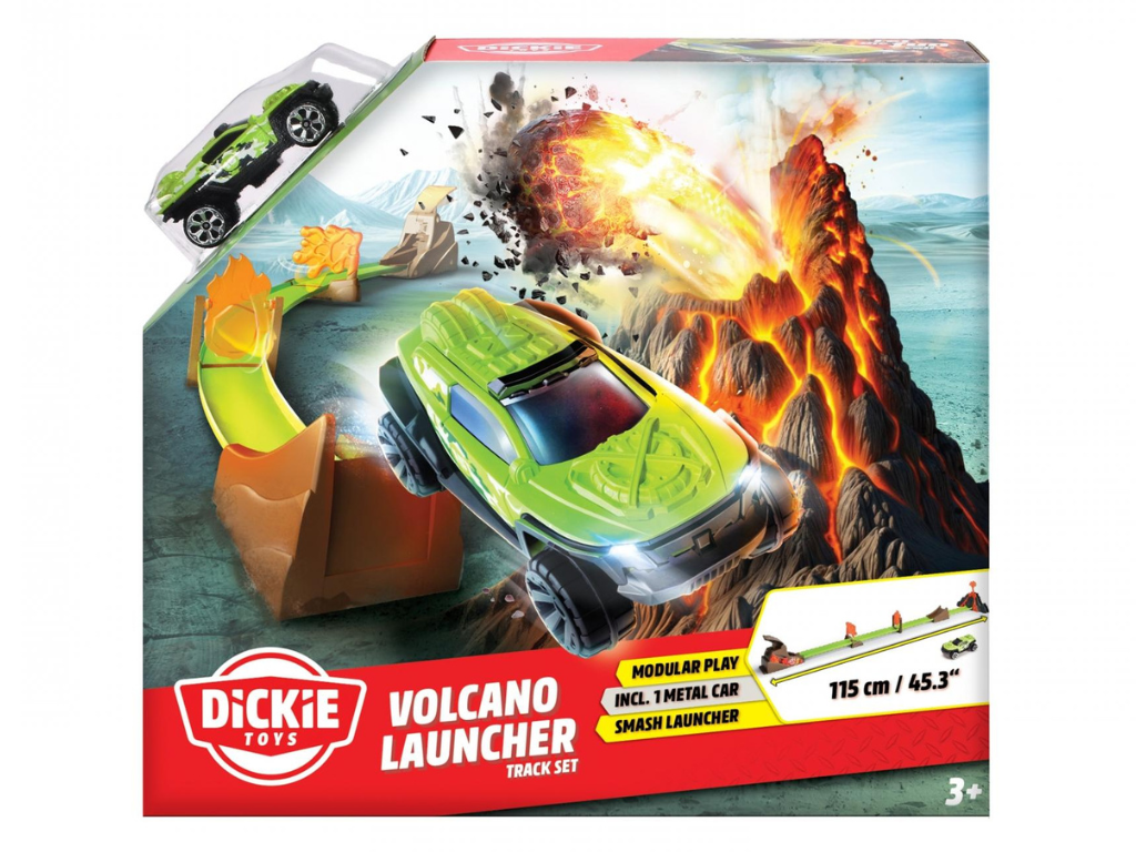 Dickie steza za avtomobilčke Volcano Launcher je adrenalinski set za otroke od 3. leta naprej, ki združuje hitrost, spretnost in eksplozivne učinke. Celotna steza je dolga 115 cm in vključuje katapult, fleksibilne proge, ovire ter igrače avtomobilček.