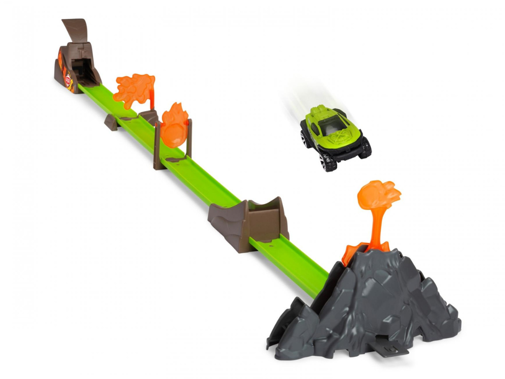 Otroci se podajo na razburljivo tekmovanje proti “brbotajoči nevarnosti”: avtomobilčki se z močnim udarcem katapulta podajo po progi skozi ogenj, valove lave in strme rampe. Na koncu sledi preskok preko vulkana, ki ob prehodu sproži “eksplozijo” s prihajajočimi kamni, kar doda dodatno napetost in zabavo.