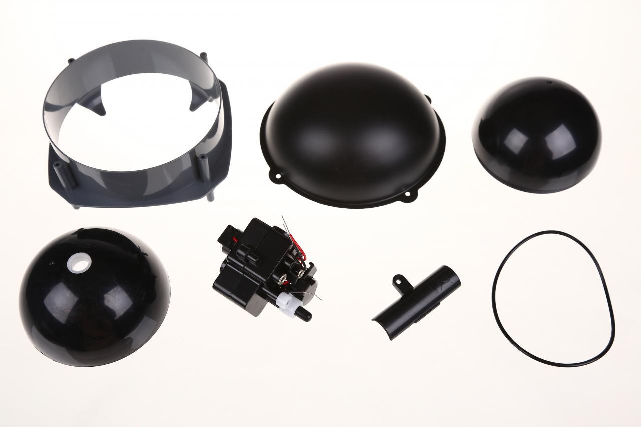 Vsebuje pokrov in podlago, veliko os, kovinsko utež, ohišje za baterijo, ohišje za motor, poloblo z odprtino za stikalo in poloblo brez odprtine, motor z žicami, vijake, 1 mehek plastični obroč, podrobna navodila.