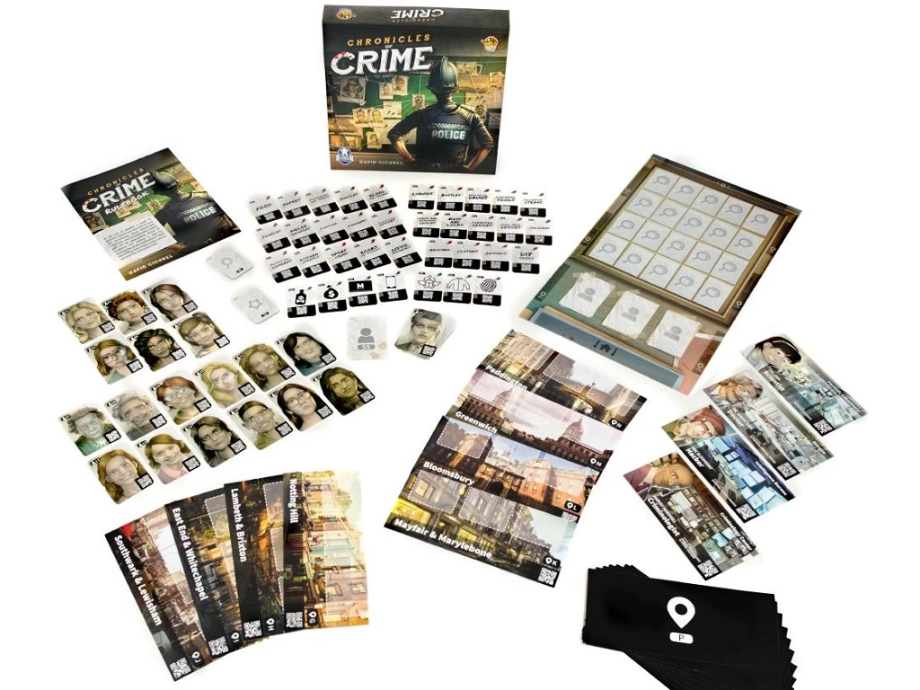 Družabna igra Chronicles of Crime EN – je nagrajena kooperativna igra kriminalistične preiskave, ki združuje namizno igro, aplikacijo in pridih virtualne resničnosti. S svojo ekipo se boste lotili kriminalnih primerov, se premikali po mestu, zasliševali osumljence ali priče ter iskali sledi v 3D prizoriščih!
