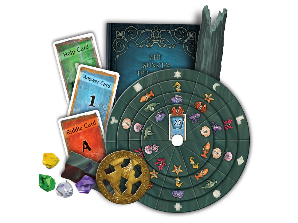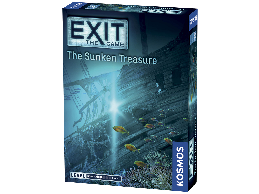 Družabna igra Exit – The Sunken Treasure – Odpravljate se na drzno odpravo v nevarne vode, kjer vas čaka legendarni zaklad potopljene ladje Santa Maria. Med raziskovanjem skrivnostne razbitine pa gre nekaj hudo narobe – ujame vas globoko pod morsko gladino! Zdaj imate omejen čas, da rešite uganke, odkrijete zaklad in predvsem – varno pobegnete na površje.