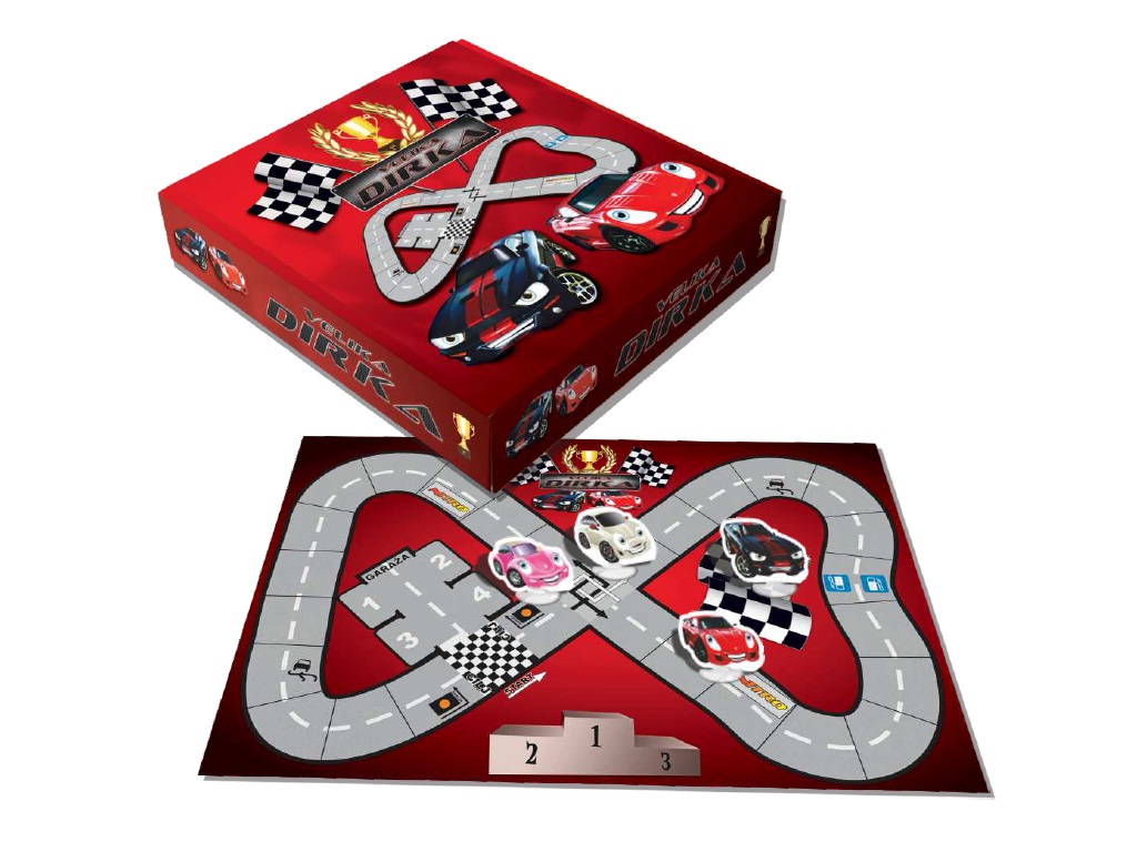 Družabna igra Velika dirka – zmagajte v dirkalni igri avtov in osvojite pokal.