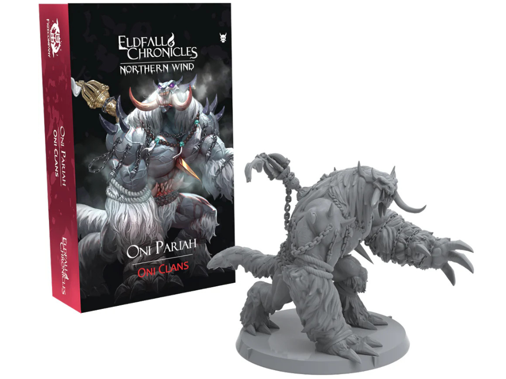 Eldfall Chronicles Oni Pariah prinaša v svet Eldfall Chronicles strašnega in neustavljivega nasprotnika, ki lahko predstavlja grožnjo v vaši kampanji ali kot močnejši pošastni član frakcije Oni Clans. Ta miniatura doda igranju nov nivo nevarnosti in taktične kompleksnosti.