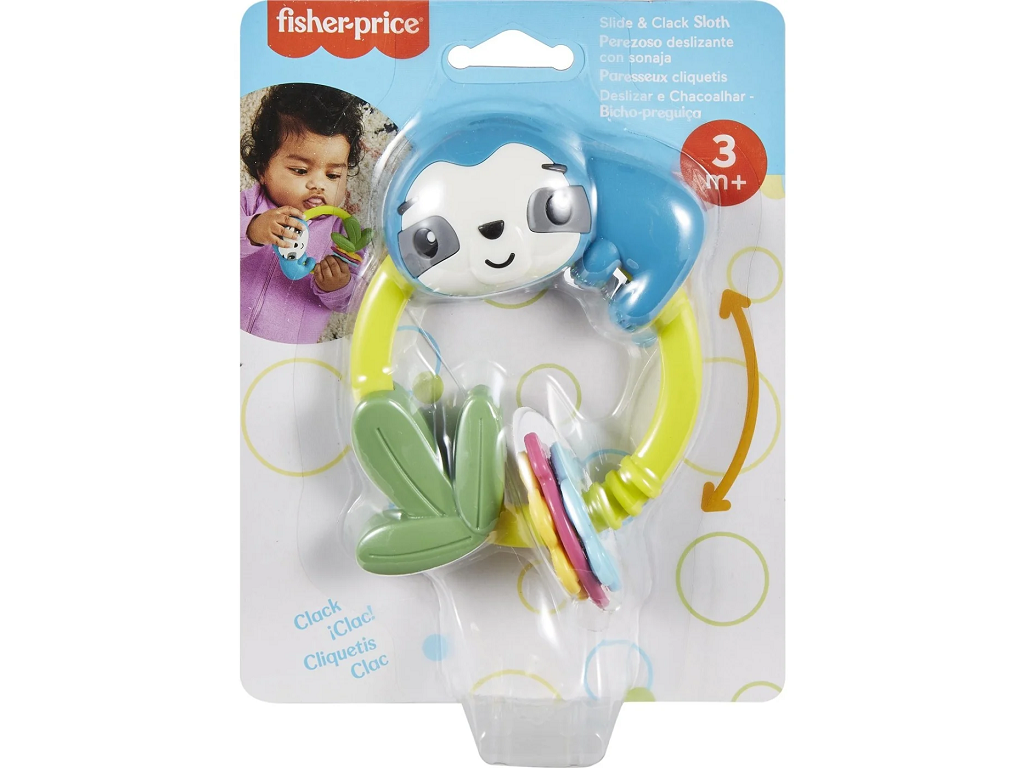 Fisher Price ropotuljica – lenivec je preprosta za majhne roke in vznemirljiva tako za dotik kot za grizenje. Igrača pomaga pri lajšanju izraščanja zob, hkrati pa otroka zaposli.