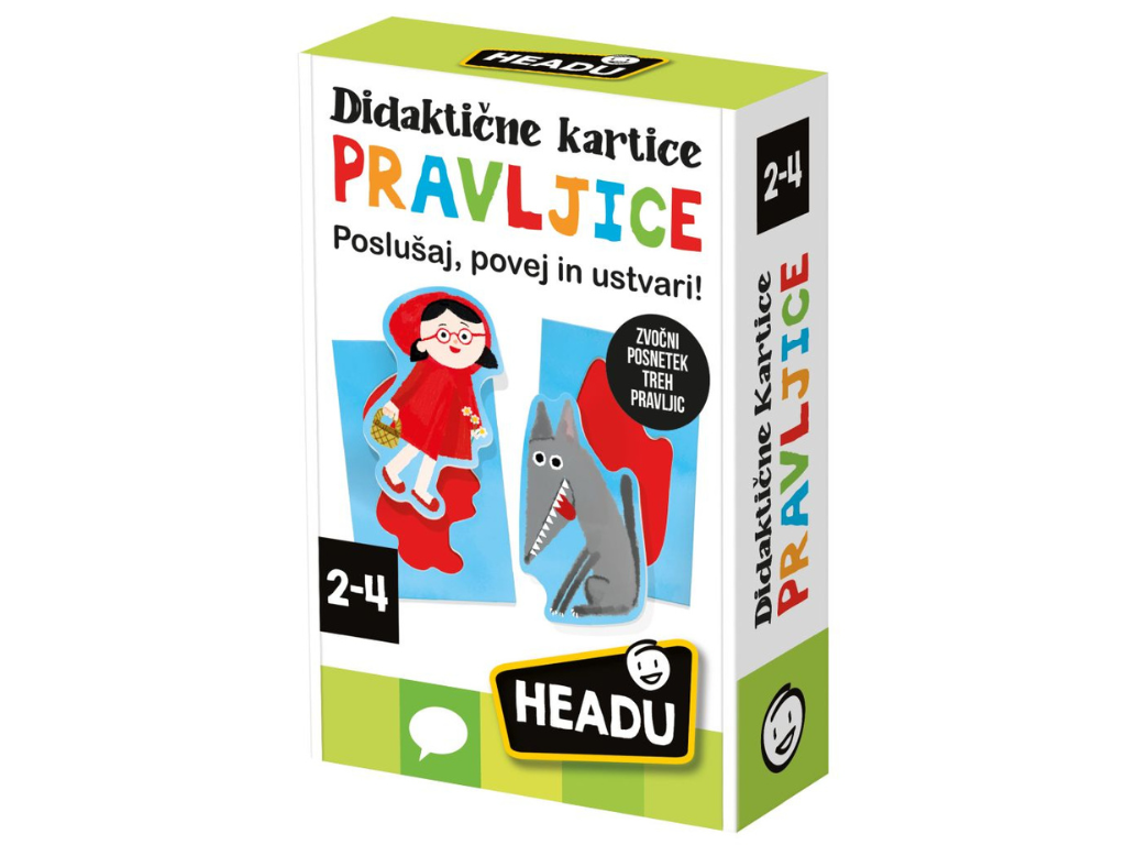 Didaktične kartice Headu prinašajo tri klasične pravljice v interaktivni obliki. Otrok vstavi like v pripadajoče prizore, posluša zgodbo prek QR-kode in samostojno razvija svojo pripovedovalno ustvarjalnost.