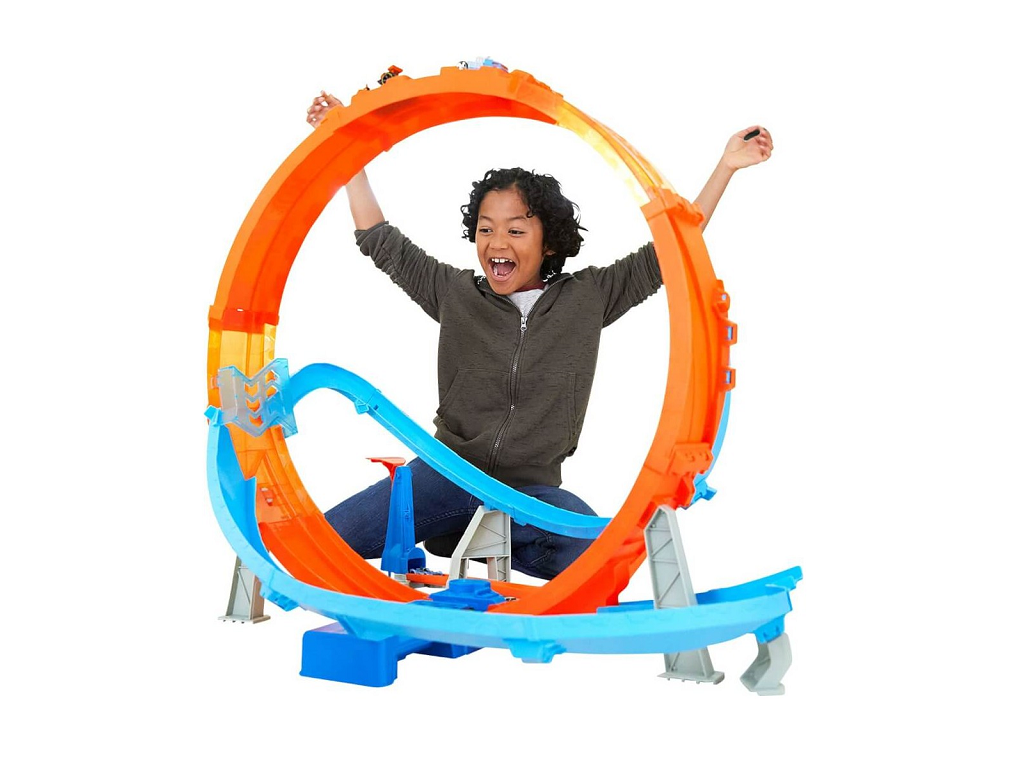 Z masivno dirkalno stezo Hot Wheels se otrokom od vsega tega navdušenja vrti v glavi! Ta legendarna steza vsebuje ogromno 70 cm široko zanko za igranje z več avtomobili!