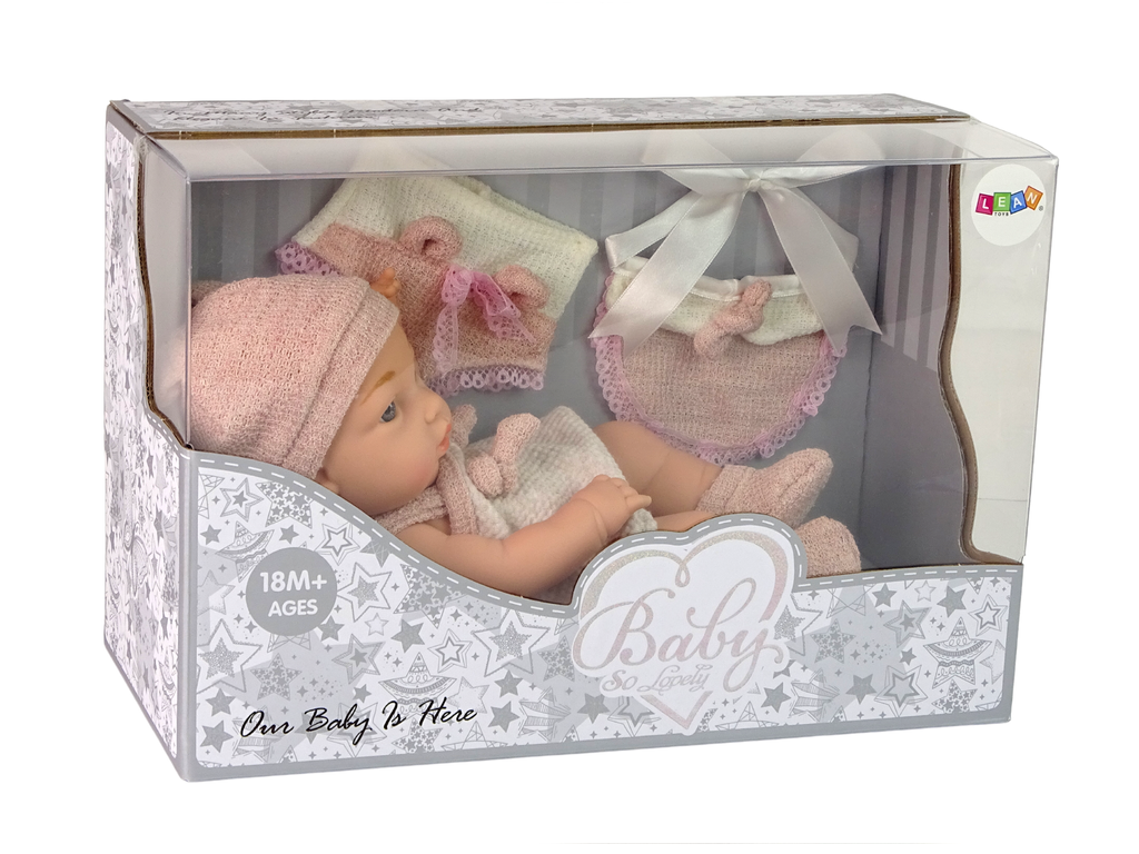 Lutka je oblečena v oblačila v obliki puloverja. Na dojenčkovi glavici je prikupna kapica, na nogah pa ima nogavice. Vsa oblačila so v svetlo rožnati barvi in nekatera imajo elemente čipke. Vse skupaj se odlično ujema in je videti preprosto čudovito. Lutka ima gibljive roke in noge ter glavo. Postavite jo lahko sede ali leže. Oblačila so snemljiva, kar vam omogoča, da zamenjate garderobo.