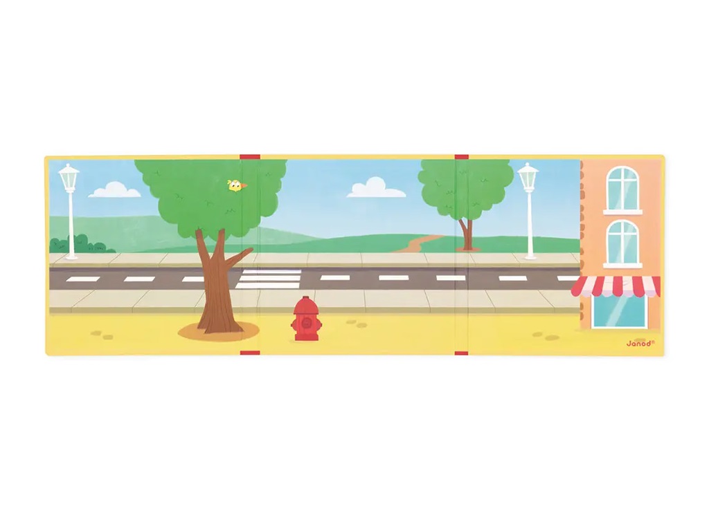 Reševanje mucka z drevesa, gašenje ognja ali pomoč poškodovanemu otroku – vsak magnet predstavlja novo nalogo in odpira vrata neomejeni pripovedni igri. Magneti so enostavni za prijemanje, ozadje pa se lahko postavi pokonci, kar spodbuja pripovedovanje zgodb. Kompaktna, zložljiva zasnova omogoča, da igra vedno potuje z otrokom – doma, na obisku ali med vožnjo.