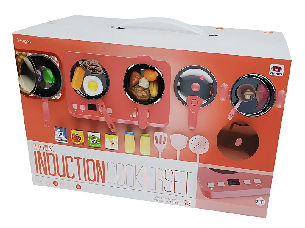 - Indukcijska in plinska kuhalna plošča: Opremljena z zvokom in svetlobnimi učinki, kar dodaja realističen občutek igranja.