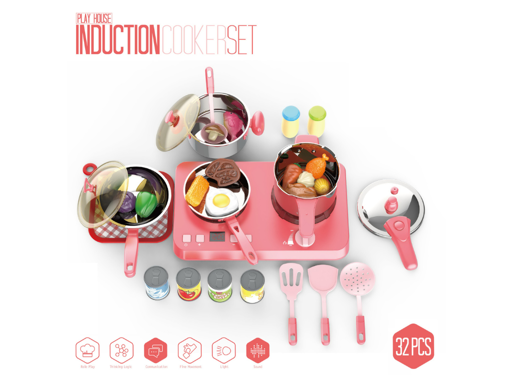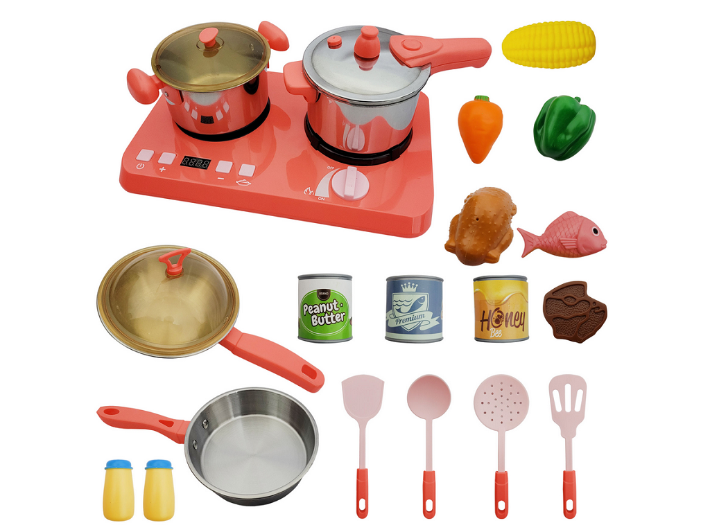 Kuhinjski set s kuhalno ploščo – roza je popolna igrača za mlade kuharske navdušence, ki si želijo ustvariti svojo lastno kuhinjo. Ta set vključuje vse potrebne dodatke, da bo igranje kuhanja še bolj zabavno in realno. Izdelan iz nerjavečega jekla, set ponuja vrhunsko kakovost in estetiko, ki posnema prave kuhinjske pripomočke.