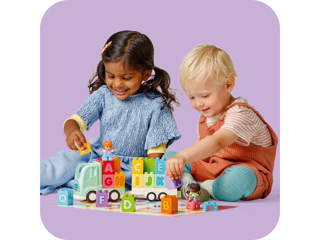 LEGO® DUPLO® Town Abecedni tovornjak (10421) je odlična učna igrača za malčke, ki želijo spoznavati črke, barve in prve besede skozi igro. S prikupnima figuricama in pisanimi kockami spodbuja domišljijo, ustvarjalnost in razvoj pomembnih spretnosti. Idealno darilo za radovedne otroke v predšolskem obdobju.