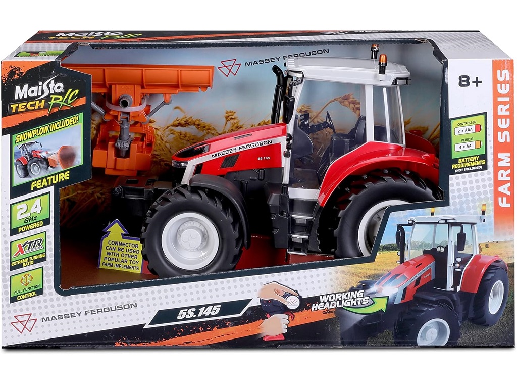 Maisto RC traktor Massey Ferguson v merilu 1:16 je polno funkcionalen model s 2.4GHz frekvenco za enostavno upravljanje in večji doseg. Opremljen je s trdnimi off-road pnevmatikami, sprednjimi in zadnjimi priključki ter je enostaven za upravljanje z intuitivnim krmilnikom.