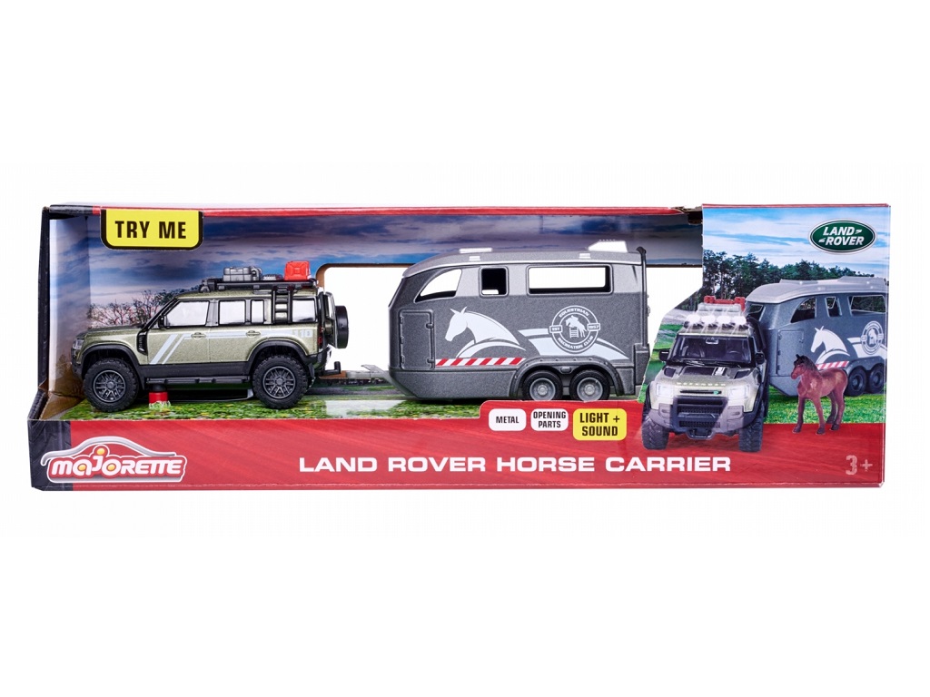Majorette Land Rover s prikolico za konja – vrhunska kombinacija vozila s prikolico z igračo konja, svetlobni in zvočni učinki, številne funkcije, za zbiratelje in otroke od 3. leta starosti.