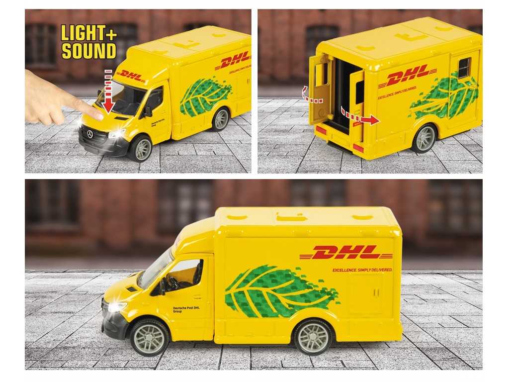 Vozilo je opremljeno tudi s številnimi zabavnimi in enostavnimi funkcijami, vključno z dvema različnima zvočnima efektoma, dvema žarometoma in osvetlitvijo podrobne notranjosti. Poleg tega ima model dostavnega vozila DHL odpirajoča se zadnja vrata, realistične gumijaste pnevmatike z vzorcem tekalne plasti in prozorna okna.
