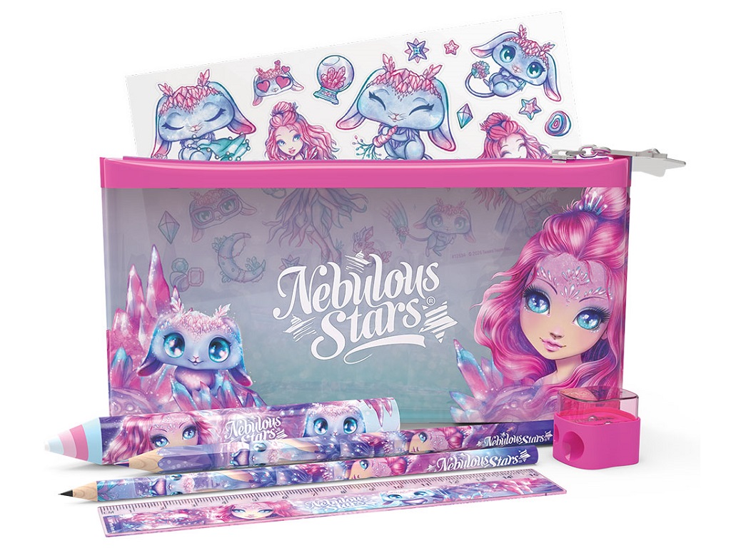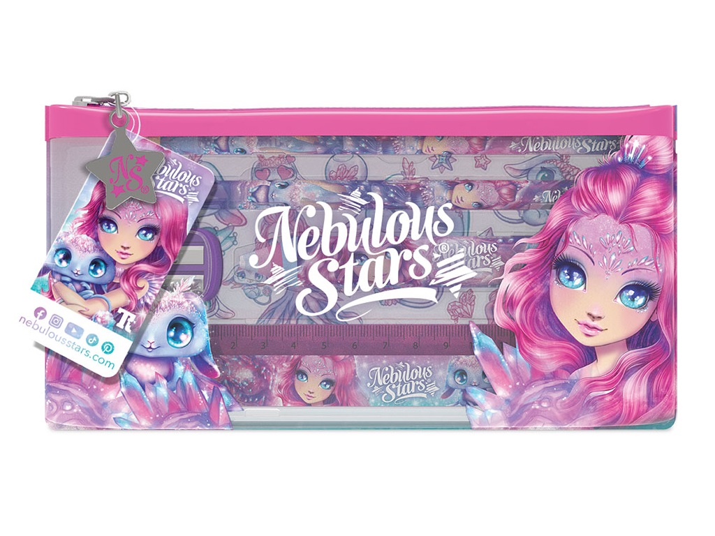 Nebulous Stars Šolski set – Cristalia & Agatha – Začnite šolski dan s stilom in čarovnijo Nebulous Stars! Ta prikupen šolski set s priljubljenima junakinjama Cristalio in Agatho vsebuje vse osnovne pripomočke, ki jih potrebujete za ustvarjanje in učenje – vse skupaj lično pospravljeno v čudoviti peresnici z njunim motivom. Idealna izbira za vse, ki želijo svojemu šolskemu dnevu dodati malce barve, domišljije in zvezdnega pridiha.