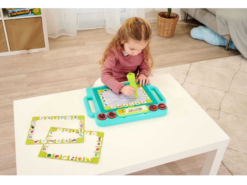 Vrhunec pa je posebno zvočno pero: otroci lahko z njim odtisnejo stopinje in sledi mačke, konja, prašička ali račke ter ustvarijo ustrezen zvok. Za prve naloge štetja in razmišljanja so v kompletu tudi tri obojestransko natisnjene učne kartice, ki jih lahko položite na slikarsko tablo. Vsestransko učenje in ustvarjalna zabava s super zvočnim peresom.