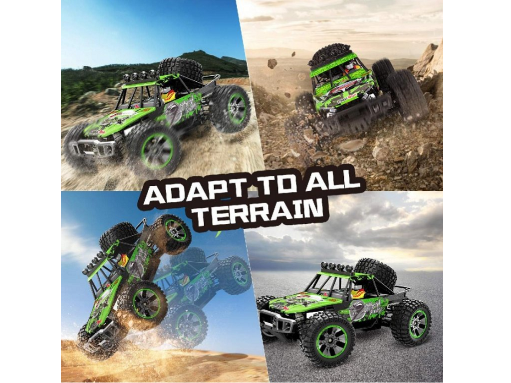 Vključuje visokokakovostno baterijo 7,4 V/1700 mAh, zato lahko v vožnji uživate približno 20 minut, odvisno od uporabe. RC avto vam omogoča nadzor nad hitrostjo. Dva gumba vam omogočata nastavitev kota krmiljenja. Medtem ko stikalo za hitrost, nastavljeno v smeri urinega kazalca, poveča hitrost vožnje. Stikalo za hitrost, nastavljeno v nasprotni smeri urnega kazalca, zmanjšuje hitrost vožnje. Odlična lastnost so z oljem napolnjeni kovinski amortizerji in pnevmatike visoke trdnosti.