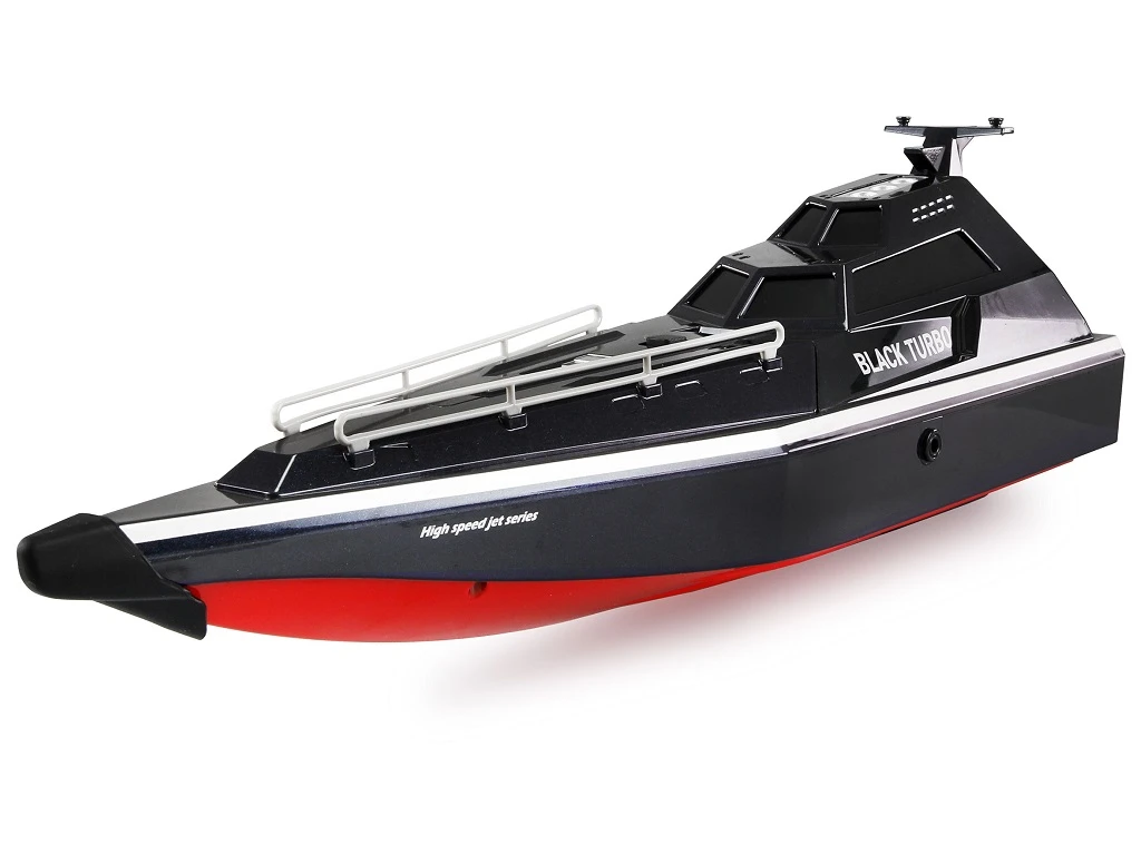 RC čoln Vojaški Turbo Jet črn – Odkrijte vojaški čoln, pravo mojstrovino kamuflaže in hitrosti, opremljen z najsodobnejšim jet pogonskim sistemom.