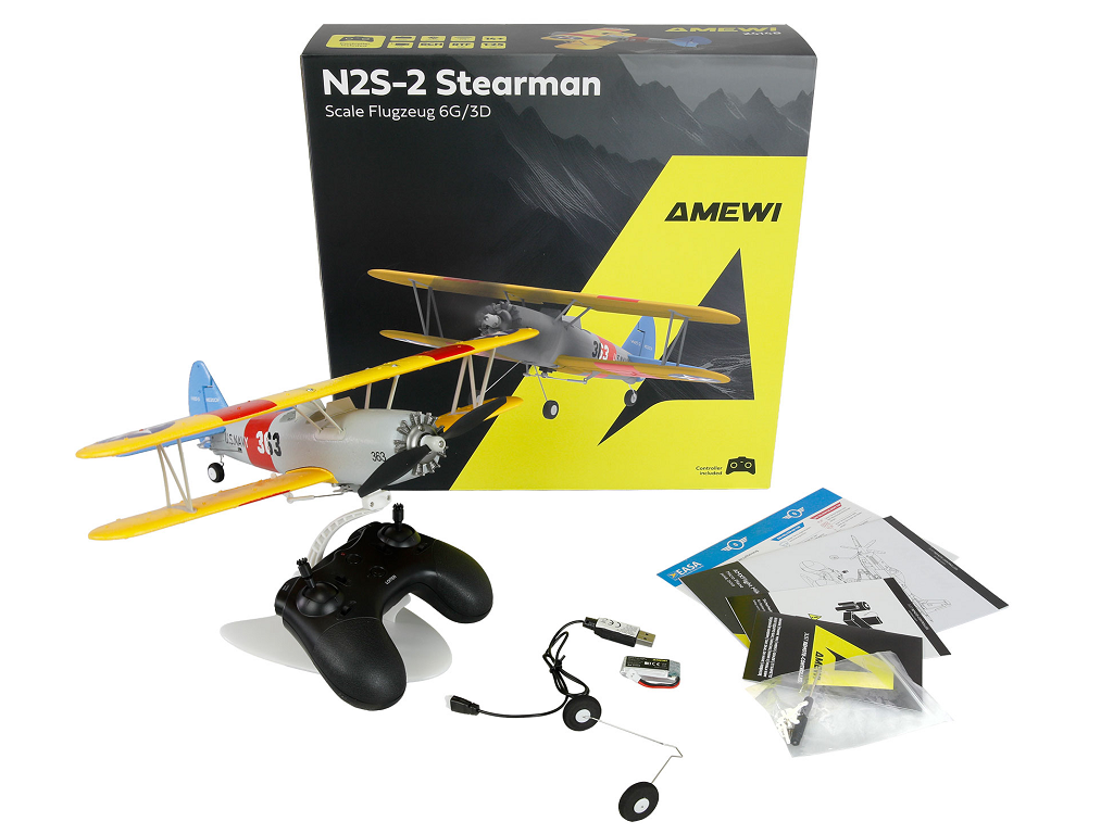 RC letalo AMXFlight N2S-2 Stearman Amewi je pripravljen za letenje (RTF – Ready to Fly) in je zasnovan z mislijo na začetnike in ljubitelje klasičnih biplanov. Gre za repliko znamenitega dvokrilca Stearman, ki so ga uporabljali kot šolski letalnik med drugo svetovno vojno. Letalo se ponaša z moderno tehnologijo stabilizacije in več načini letenja, zaradi česar je idealno tako za prve polete kot tudi za bolj zahtevne modele.