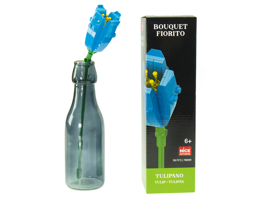 Roža kocke – tulipan – set vsebuje 58 koščkov iz katerih se sestavi tulipan. Sestavlja ga živahen komplet gradbenih kock, ki prikažejo tulipan. Ta je popoln za mlade graditelje in botanične navdušence. Vsaka kocka je skrbno izdelana iz visokokakovostnih materialov, da zagotovi trajnost in enostavno sestavljanje, kar omogoča brezhibno gradbeno izkušnjo.