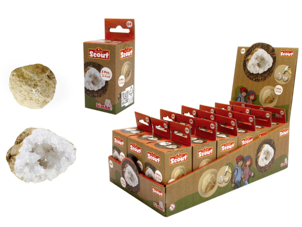Scout Geode 2 kosa je popoln uvod v čarobni svet mineralov za male raziskovalce. V vsaki škatlici sta samo 2 geodi, vsaka velikosti 3–4 cm, ki skrivata edinstvene, bleščeče kristale. Ob odprtju geod se razkrije prava mala čarovnija narave, ki otroke navduši in spodbudi njihovo radovednost ter ustvarjalnost.