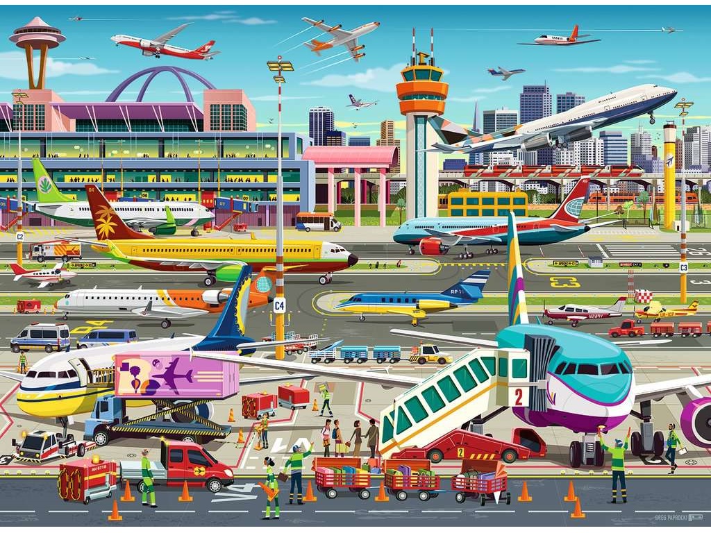 Sestavljanka Letališče 150d – Razburljiv prizor letališča oživi v tej barviti sestavljanki s 150 XXL koščki! Otroci bodo med sestavljanjem odkrivali letala, vozila in dogajanje na letališču, hkrati pa razvijali motorične spretnosti in koncentracijo.