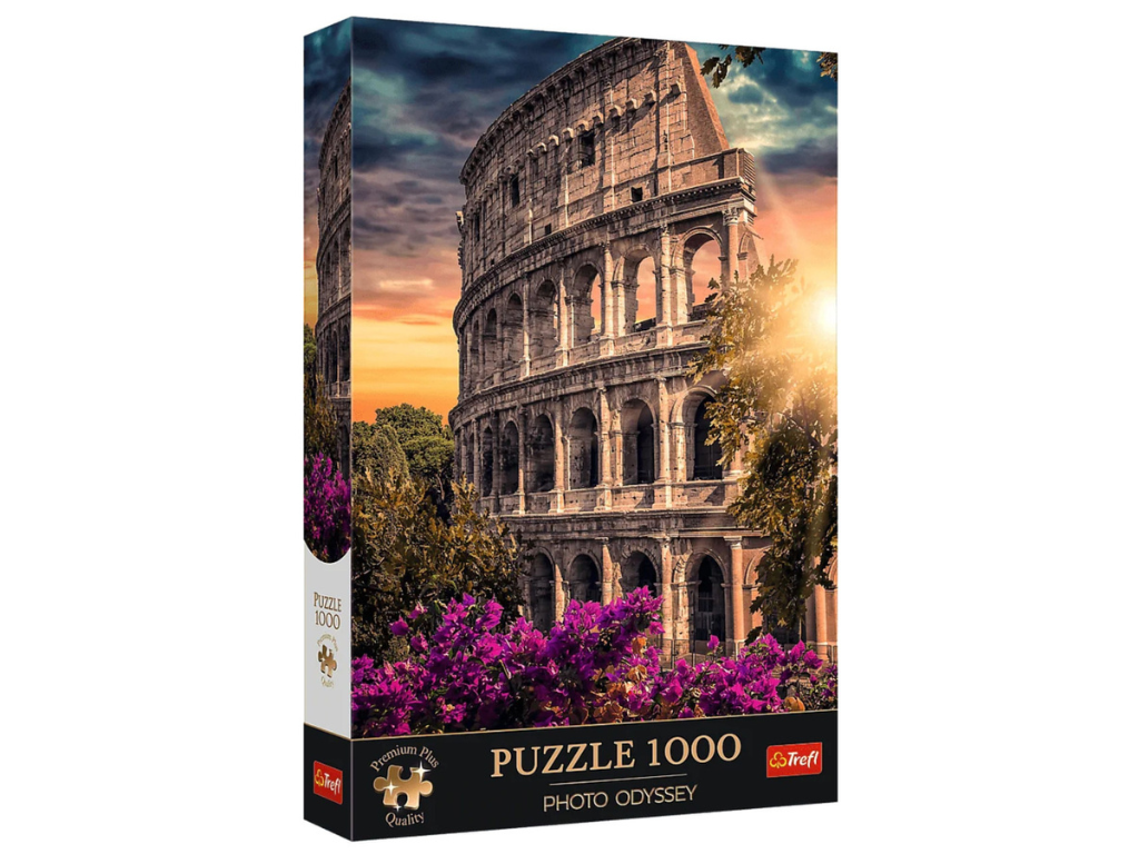 Trefl sestavljanka Kolosej v Rimu 1000d je namenjena ljubiteljem zgodovine, arhitekture in potovanj – priporočena starost je 10+ let. Prikazuje ikonični Kolosej v Rimu ob sončnem zahodu, ujet v dramatični svetlobi, ki poudarja mogočno arhitekturo in skrivnostnost antičnega amfiteatra. Ta sestavljanka vas popelje v srce večne prestolnice in nudi sproščujoč izziv za vse navdušence nad sestavljanjem.