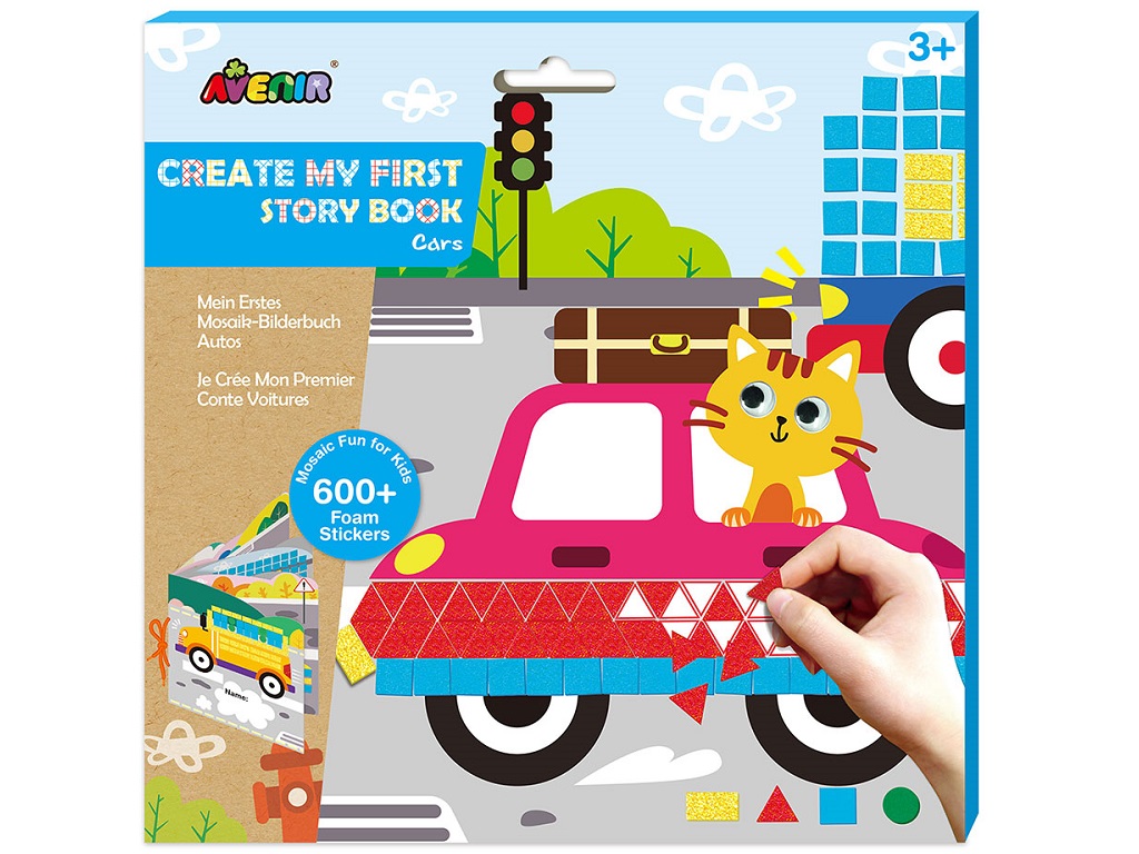 Ustvari prvo knjigo zgodb – avtomobili – Otroci bodo uživali ob izdelovanju čisto svoje knjige z velikimi nalepkami iz pene, s katerimi bodo lahko ustvarili prave likovne kreacije. Ta ustvarjalni komplet ponuja zabaven in enostaven način za izražanje kreativnosti ter hkrati spodbuja razvoj finih motoričnih spretnosti.